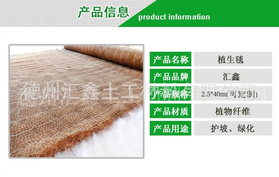 植生毯是采用椰丝纤维制造而成的,是一种边坡绿化护坡材料,是采用植物纤维层,连同定型网、草种布,通过设备一次性制造而成的生态护坡材料,或椰丝毯植生毯由椰子纤维和麻网通过加工做成供植物生长的基带。